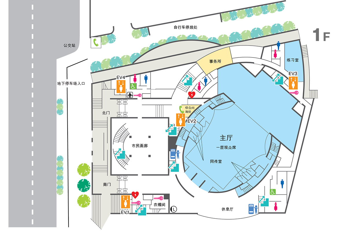 采用地板可调节式系统,可以灵活改变舞台或观众席位置,能够充分配合会议、讲座、演唱会、舞台剧、时装秀等多种活动或展会的举办需求。 另有6间休息室。 |