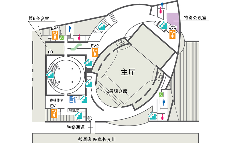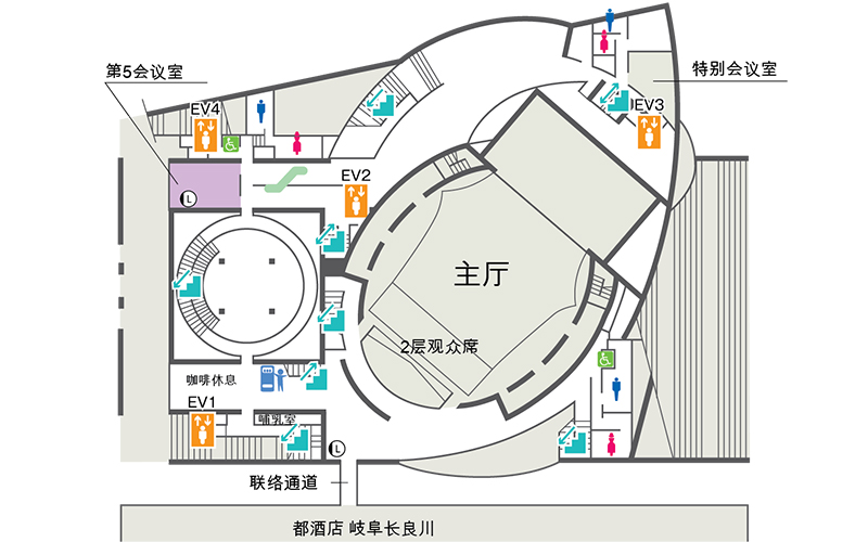 讲堂形式的小规模会议室,座位数分别为24或42。可用于各种集会,会议或作为办公室,休息室使用。
