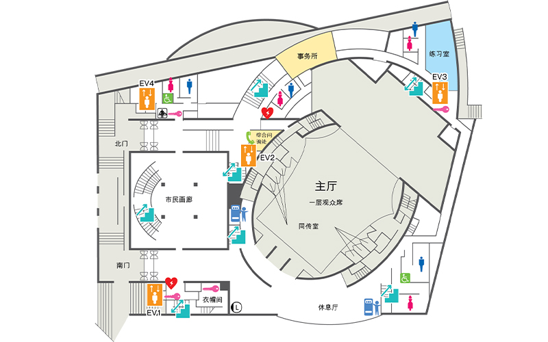位置方便通往主厅休息室或舞台,适于作为VIP休息室使用。