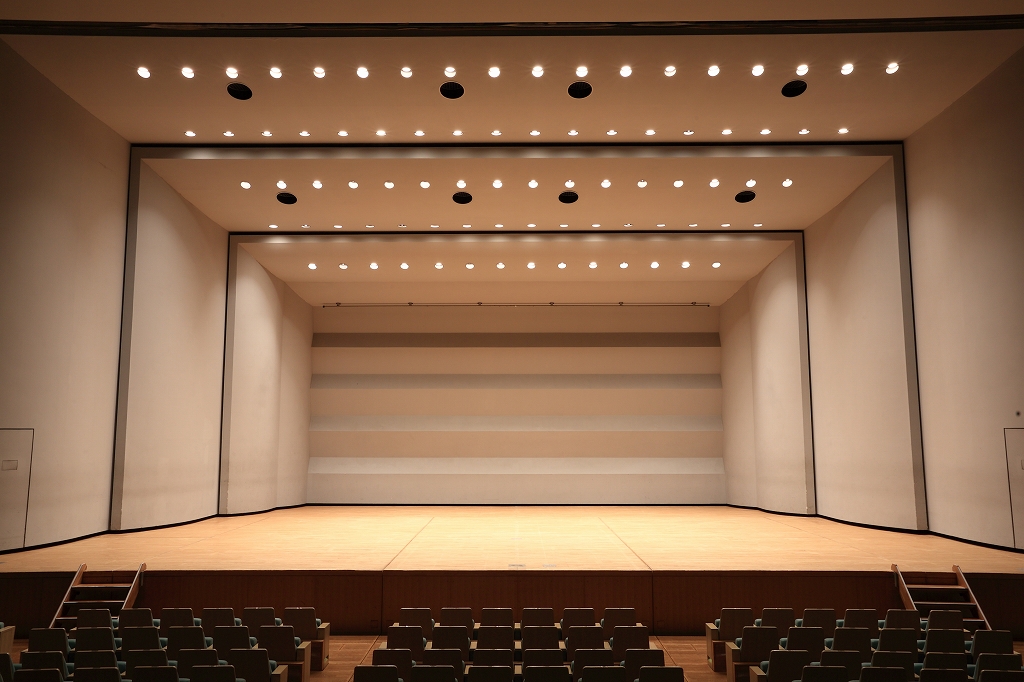 メインホール<さらさ~ら>の舞台は、日本でも数少ない可動床システム形式の舞台です。